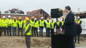 „Идемо напред, идемо у сутра и градимо земљу своје деце. Идемо право у будућност“, поручио је Вучић и захвалио радницима који ће вредно радити на изградњи станова.