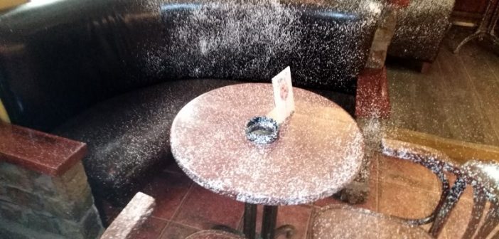 Како незванично сазнајемо у кафић је ушла особа носећи на леђима канту са прскалицом и уништила просторије бојом. Највише је оштећен инвентар кафића и материјална штета је велика.