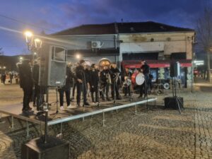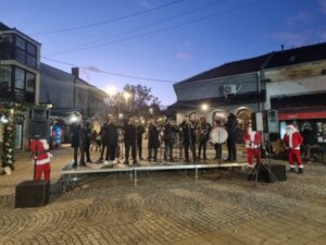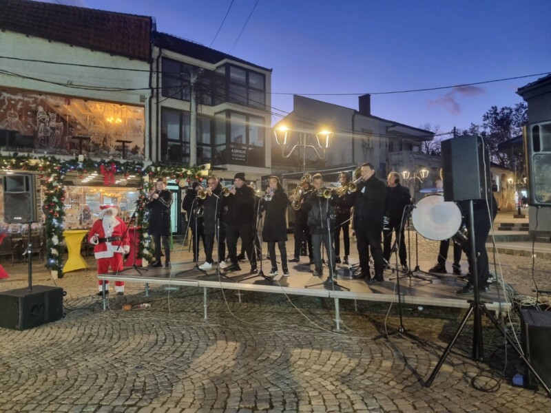 Врањанци су припреме за дочек Нове 2026. године наставили на градском шеталишту, уз звуке трубе оркестра ,,Врањски мерак“, који постоји и ствара скоро две деценије.