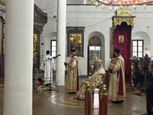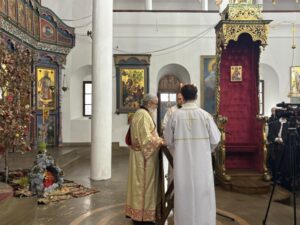 Свету архијерејску литургију служио је архиепископ и митрополит врањски господин Пахомије са свештенством.