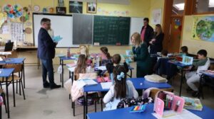 Председница Скупштине и Савета за безбедност саобраћаја на територији града Врања, Зорица Јовић и градски већник Дарко Раденковић посетили су ОШ ,,Бранко Радичевић“, где су првацима поделили „Пажљивкова правила у саобраћају“.