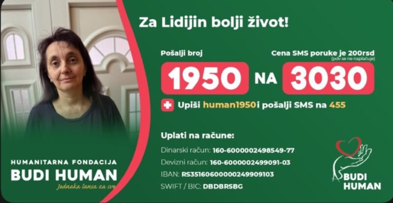 Хуманитарна фондација БУДИ ХУМАН – Александар Шапић прикупља новчана средства за Лидију Крстић (1973)