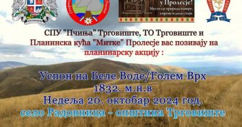 У организацији Спортско планинарског удружења „Пчиња“, Туристичке организације Трговиште и планинске куће Митке, 20.октобра биће…