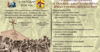 Поводом 106. годишњице од ослобођења Врања у Првом светском рату у петак 4.октобра биће одржана…
