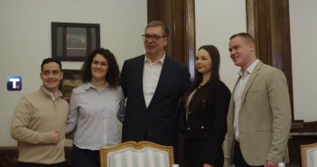 Председник Србије Александар Вучић разговарао је са студентима који су га посетили на радном месту.…