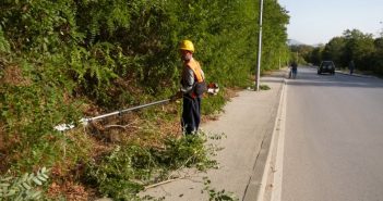 Радници Службе градског зеленила врањског „Комрада“ раде на уређењу прилаза Врању на потезу код Симпа…