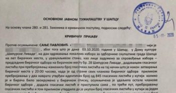 У пријави се наводи да је Павловићева том приликом извршила кривично дело фалсификовања резултата гласања…