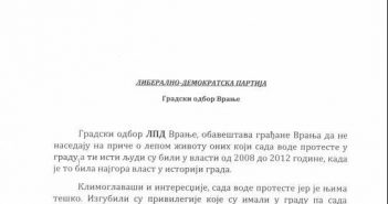 Градски одбор Либерално – демократске партије у Врању огласио се саопштењем за јавност у коме…